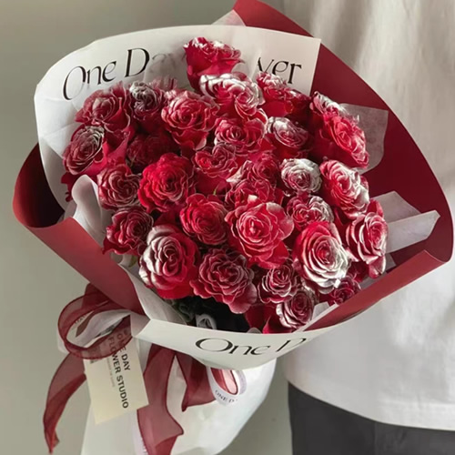 材 料: 33枝银河玫瑰(银河系喷色红玫瑰)