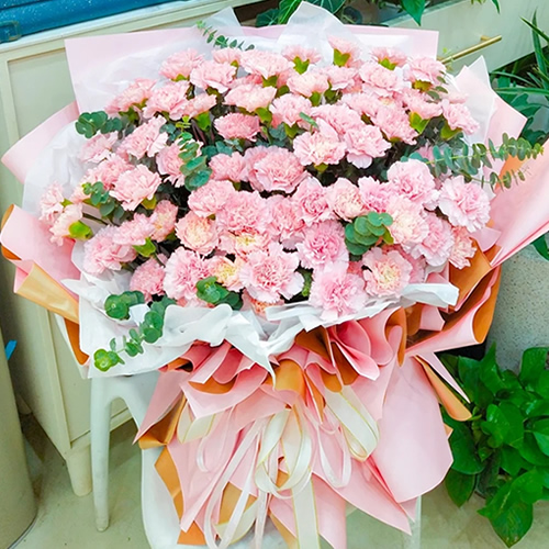 [材 料]:99枝粉色康乃馨,尤加利叶搭配
