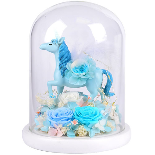 [材 料]:蓝色独角兽 永生花 玻璃罩